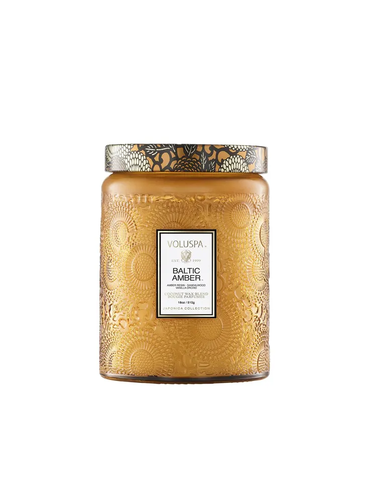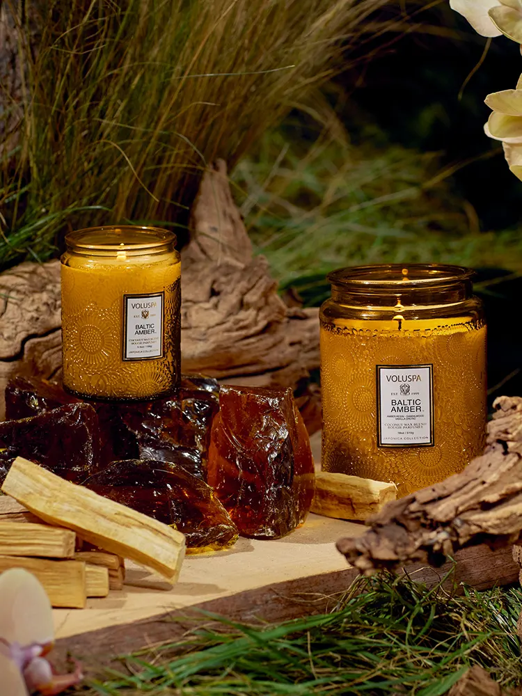 Baltic Amber—warm amber, sandalwood & vanilla blend for a cozy, timeless feel.