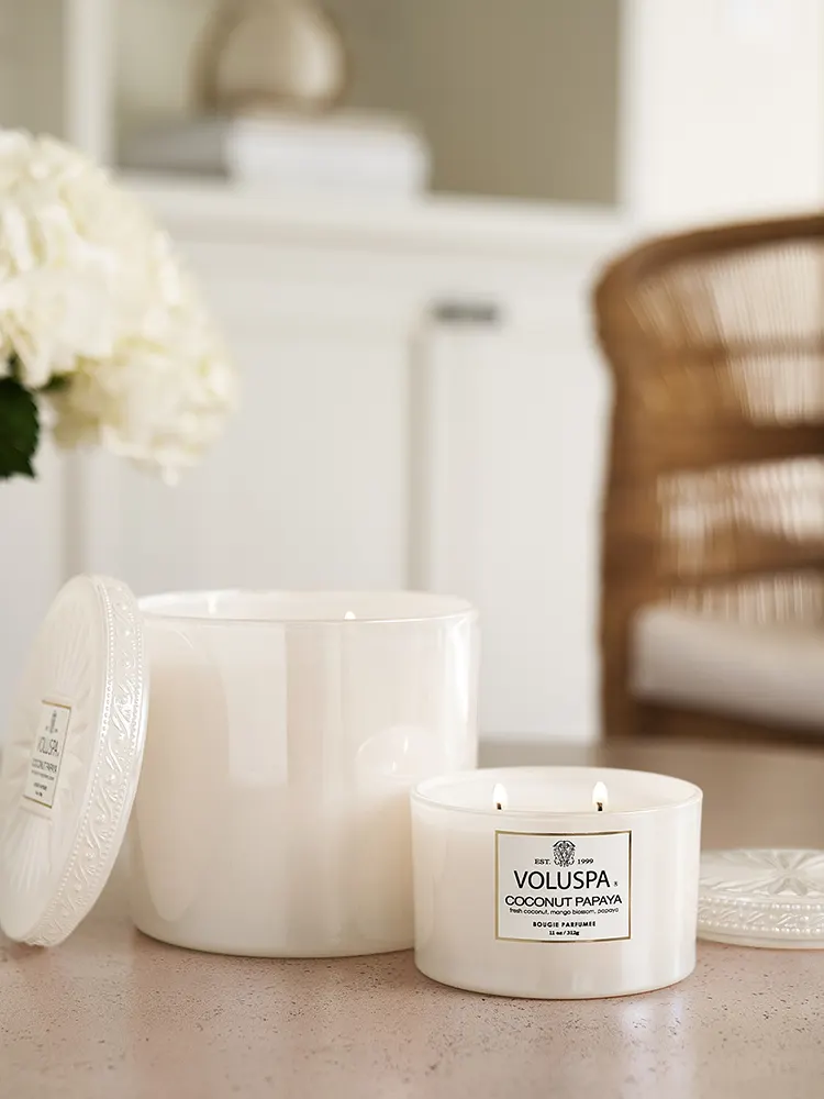 Coconut Papaya—a tropical blend of creamy coconut and juicy papaya for a lush escape.