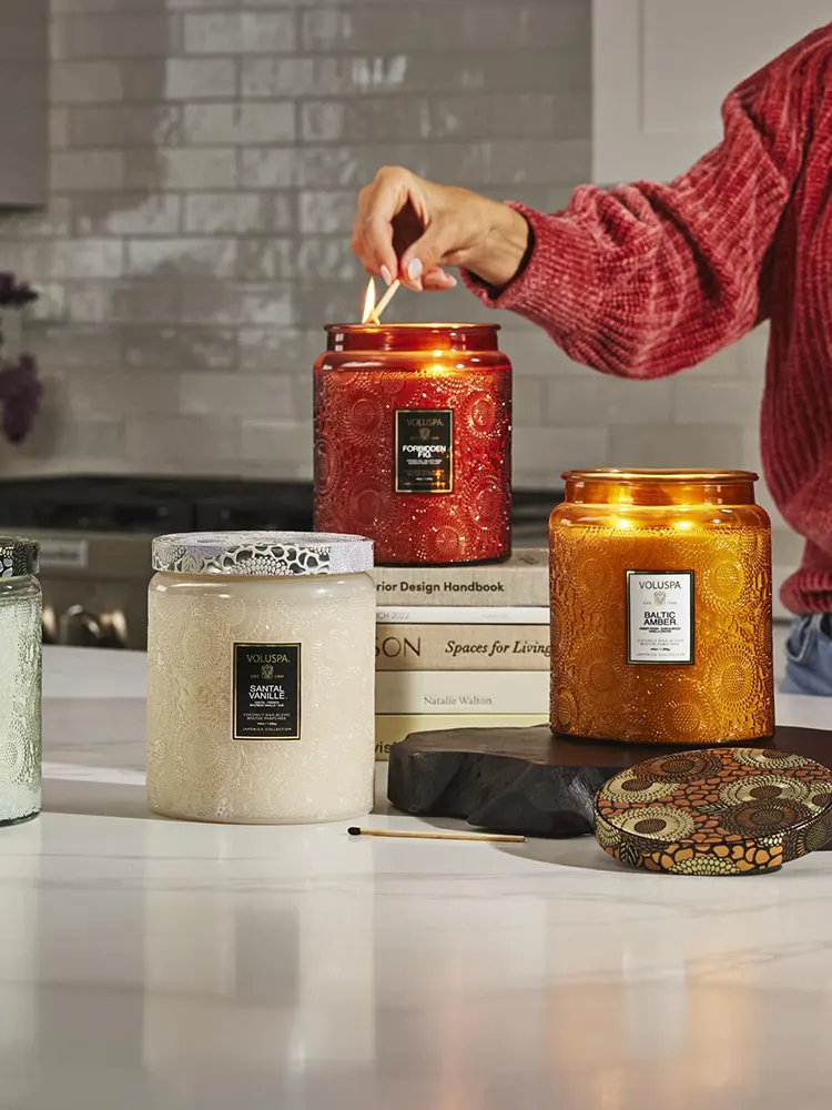 Elevate your space with Voluspa Scented Candles and Reed Diffuser – luxurious scents, elegant design. Shop now and enjoy our limited-time offer!