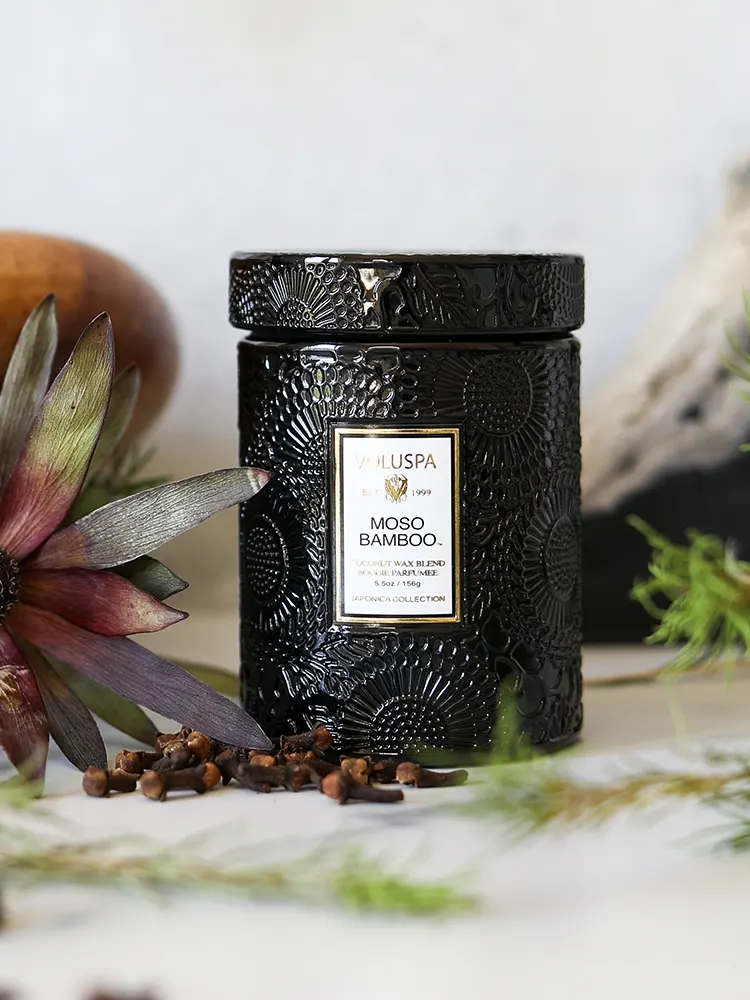 Moso Bamboo—crisp bamboo, black musk & vetiver for a clean, calming atmosphere.
