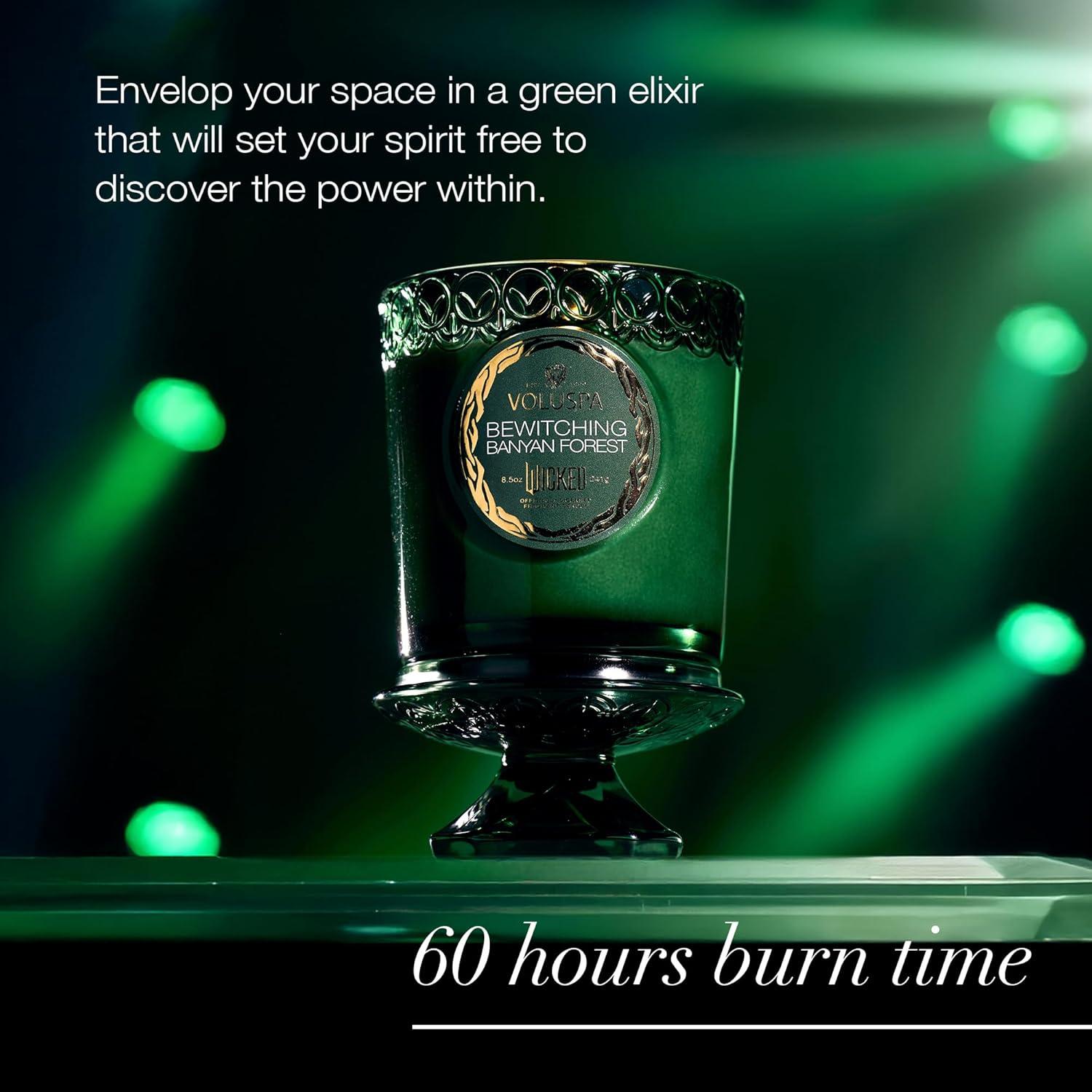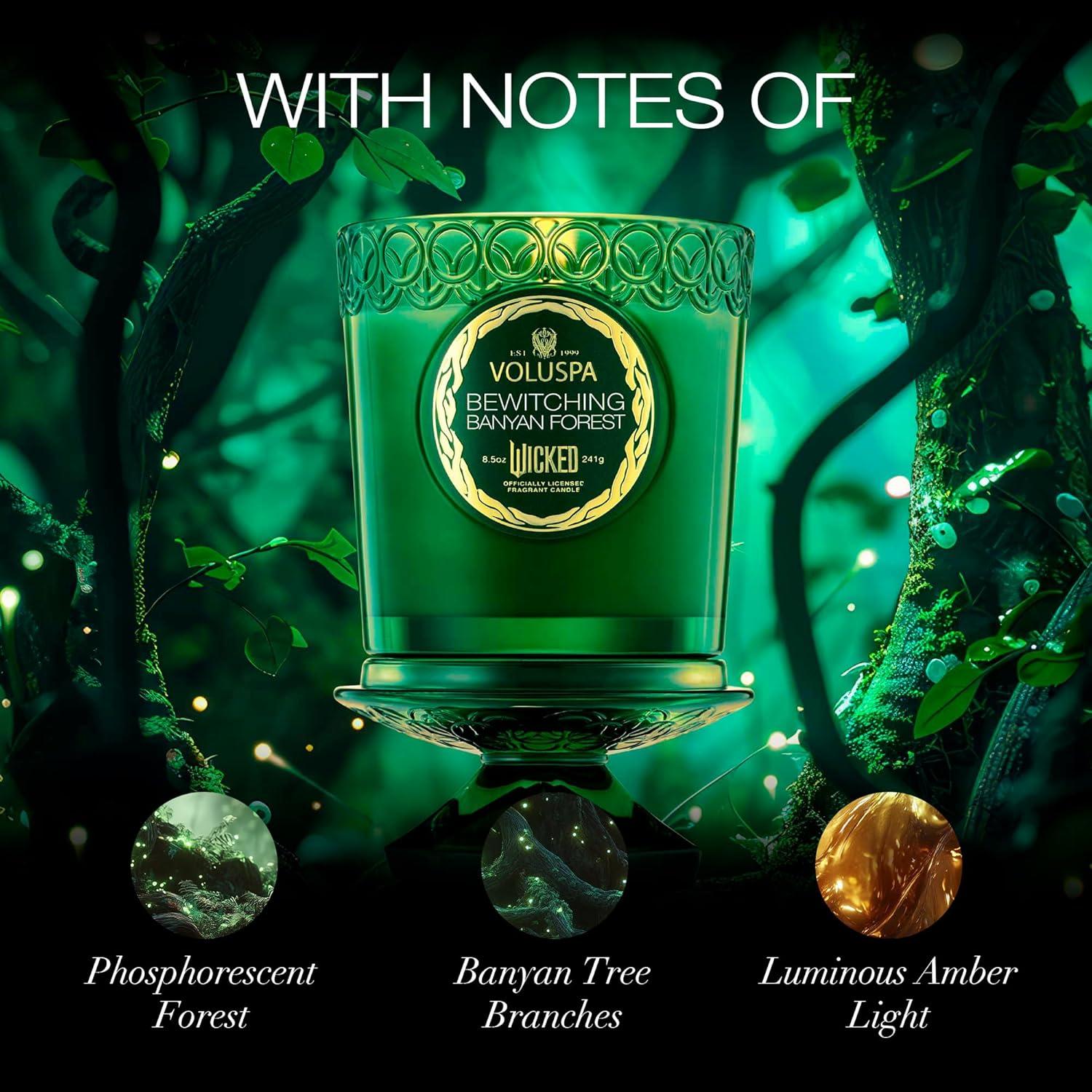 Voluspa Wicked Collection Glinda Perfectly Pink Yuzu Classic Citrus Candle, 8.5 oz, Scented Candles for Home, 60 Hour Burn Time, Handmade in The USA(Bewitching Banyan Forest)