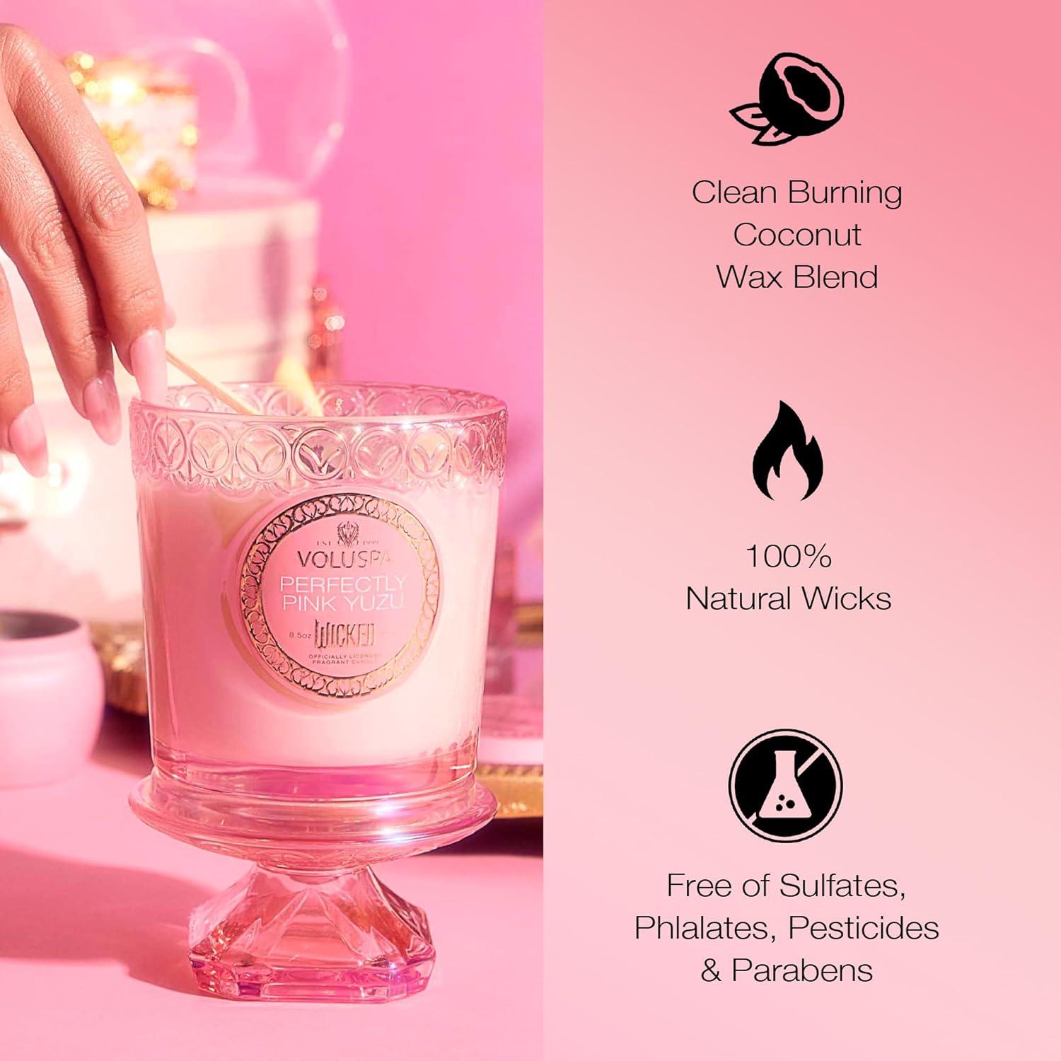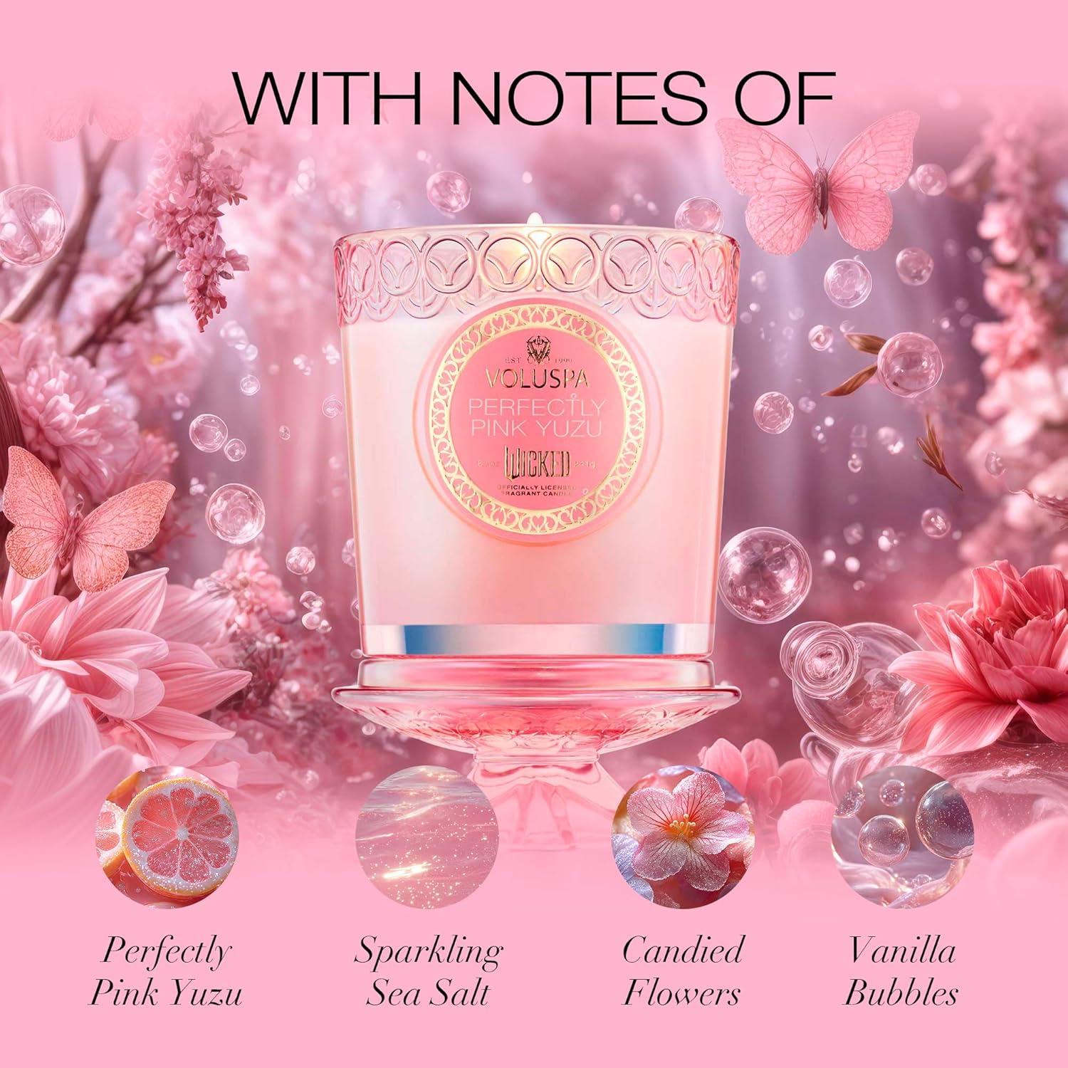 Voluspa Wicked Collection Glinda Perfectly Pink Yuzu Classic Citrus Candle, 8.5 oz, Scented Candles for Home, 60 Hour Burn Time, Handmade in The USA(Perfectly Pink Yuzu)