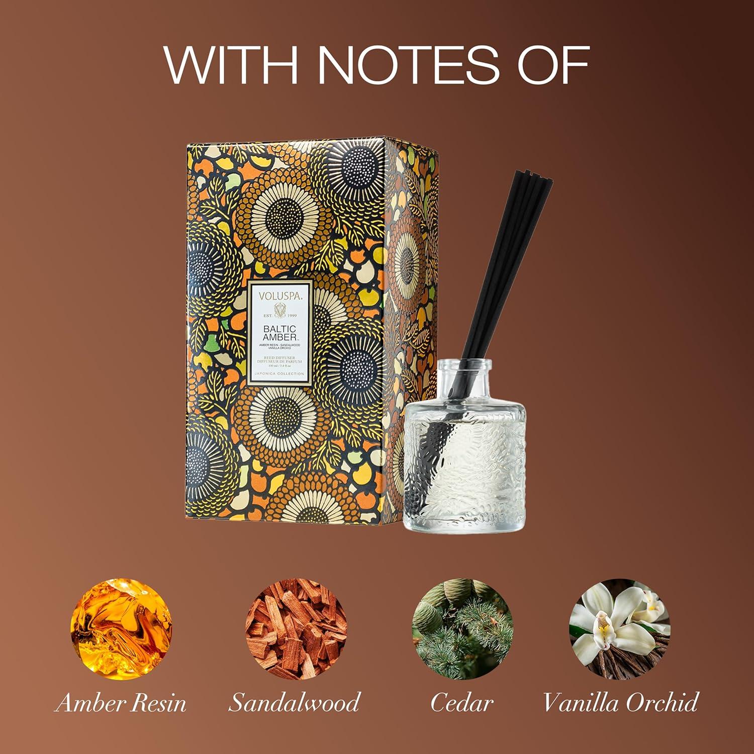 Voluspa Mokara Scented Reed Diffuser, 3.4 oz, Luxury Orchid Diffuser, Oil Reed Diffusers for Home, Handcrafted in the USA(Baltic Amber)