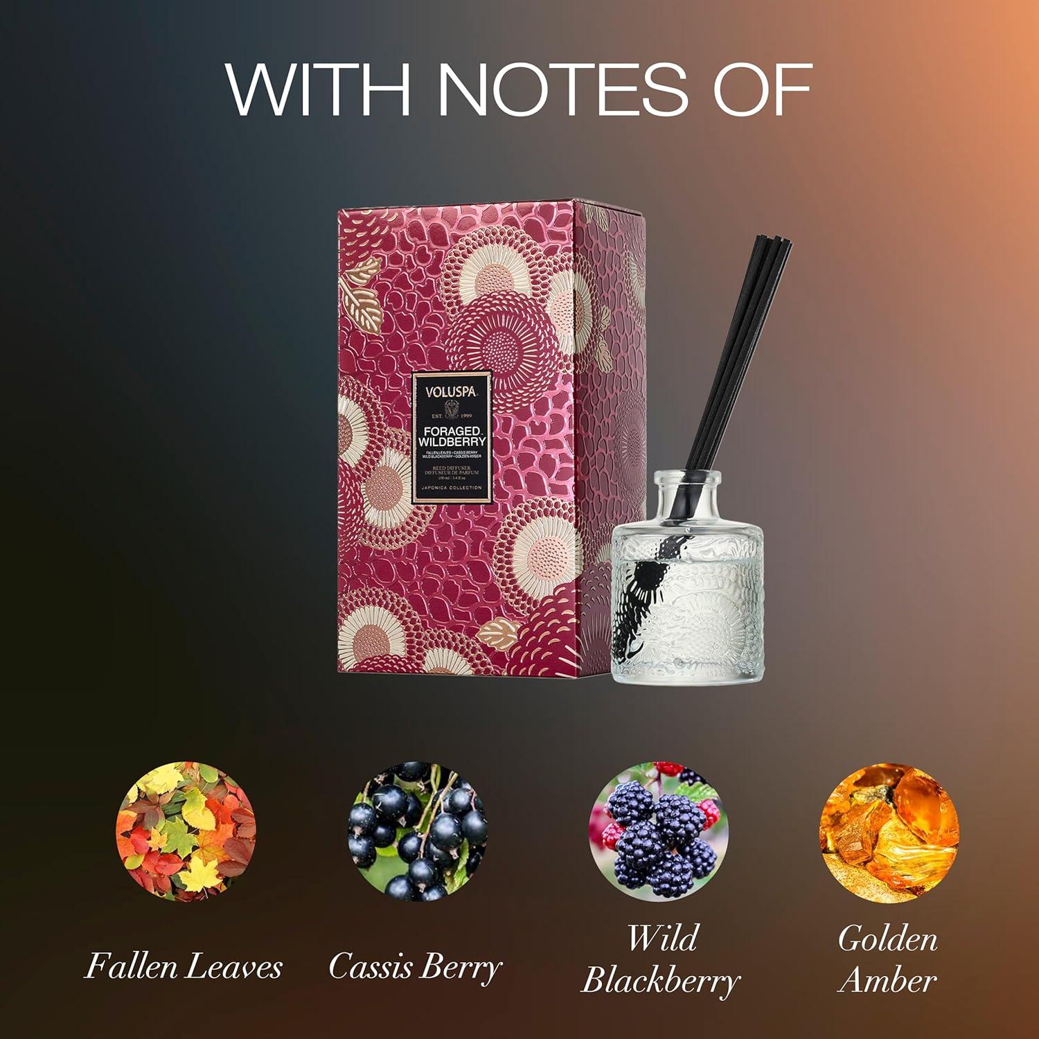 Voluspa Mokara Scented Reed Diffuser, 3.4 oz, Luxury Orchid Diffuser, Oil Reed Diffusers for Home, Handcrafted in the USA(Foraged Wildberry)