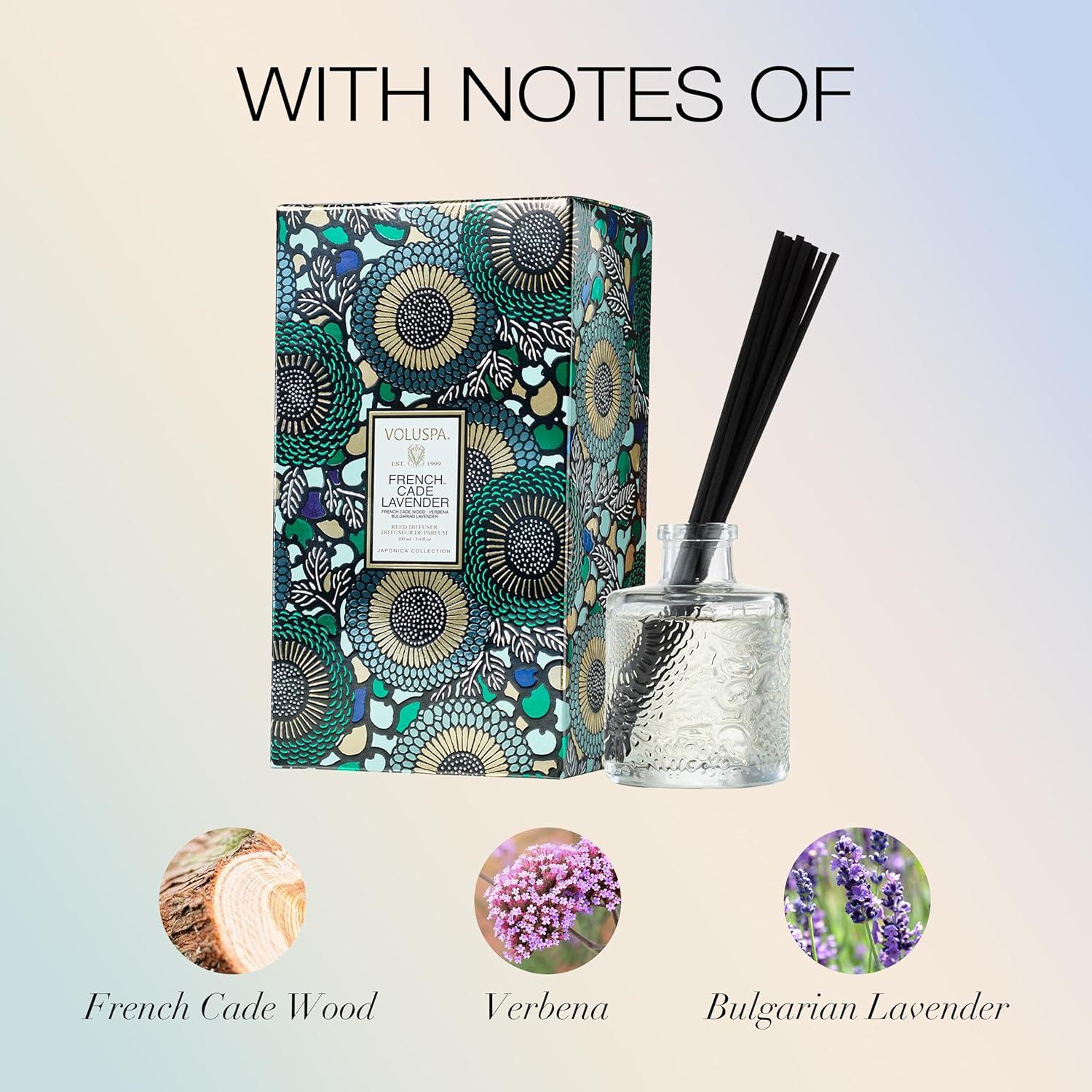 Voluspa Mokara Scented Reed Diffuser, 3.4 oz, Luxury Orchid Diffuser, Oil Reed Diffusers for Home, Handcrafted in the USA(French Cade Lavender)