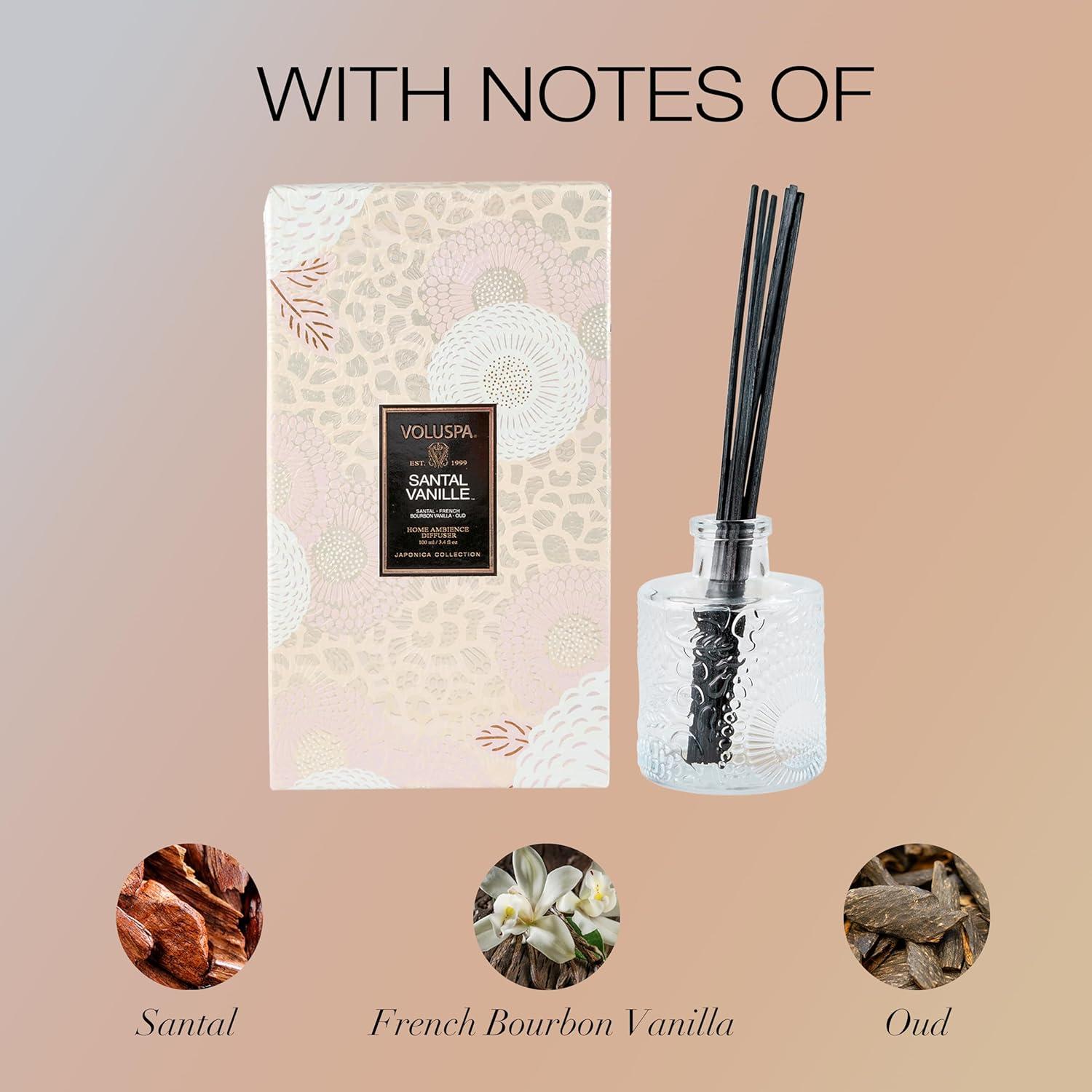 Voluspa Mokara Scented Reed Diffuser, 3.4 oz, Luxury Orchid Diffuser, Oil Reed Diffusers for Home, Handcrafted in the USA(Santal Vanille)