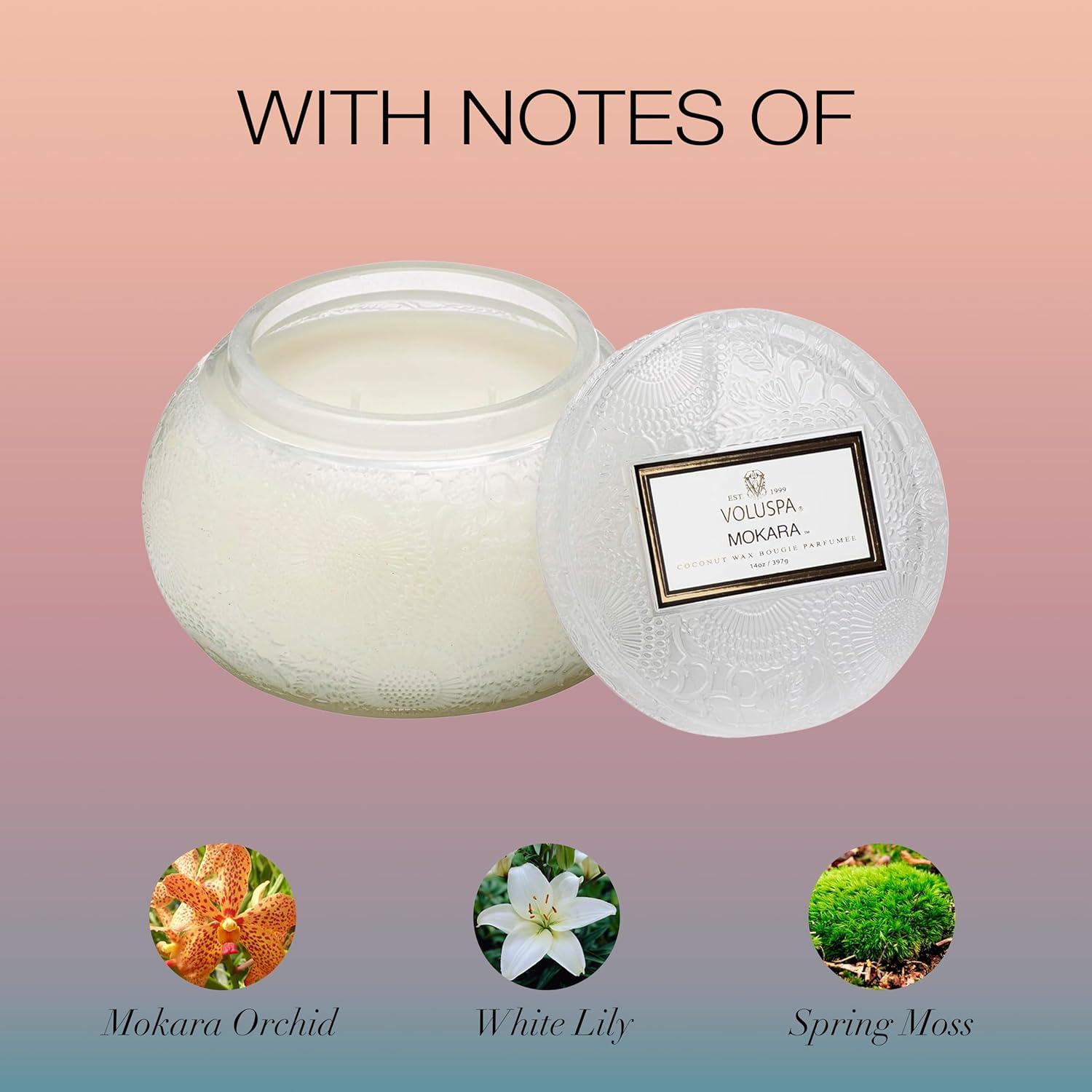 Voluspa Panjore Lychee, Glass Chawan Bowl Candle, 14 oz, 50 Hour Burn Time, Coconut Wax for Clean Burning, Handcrafted in the USA(Mokara)