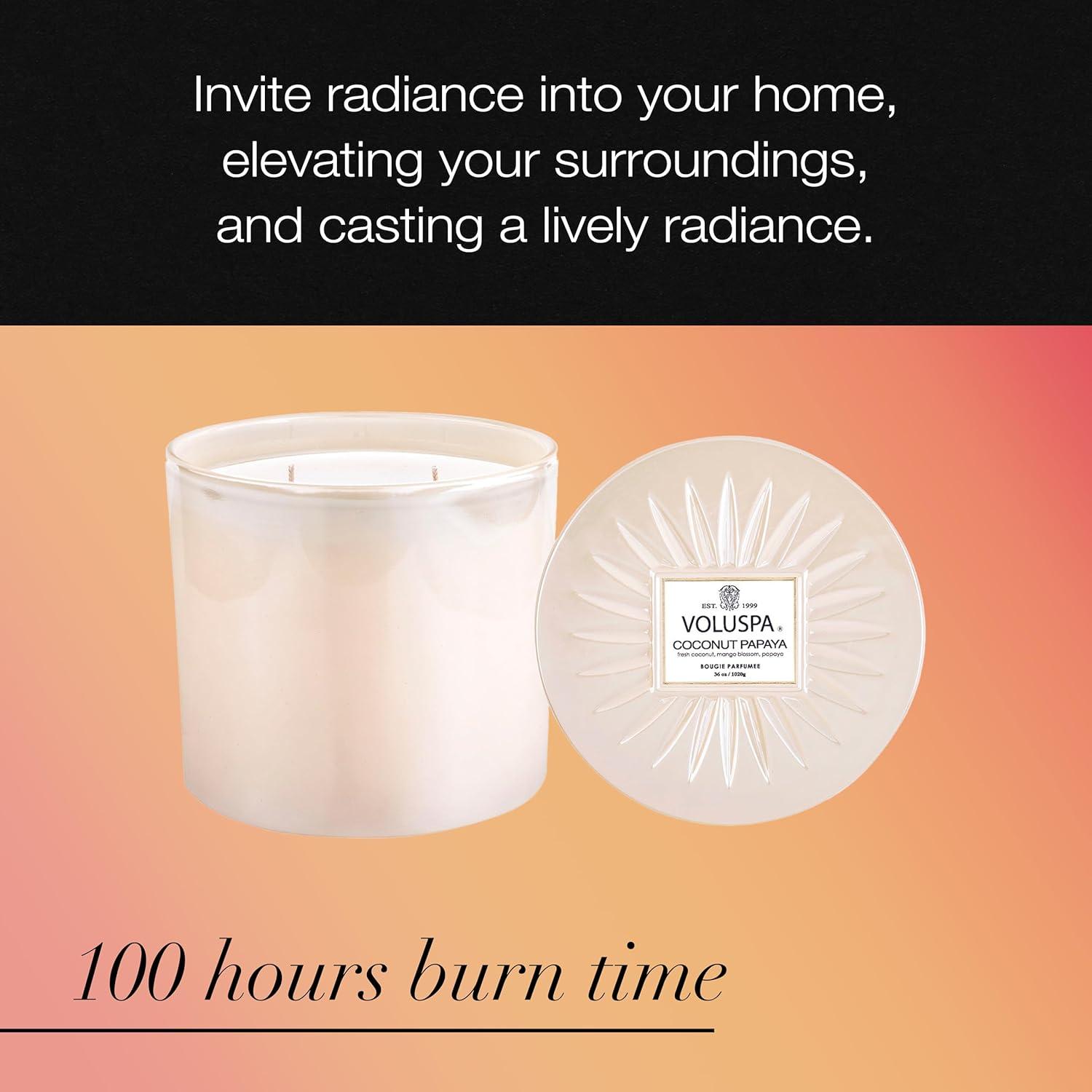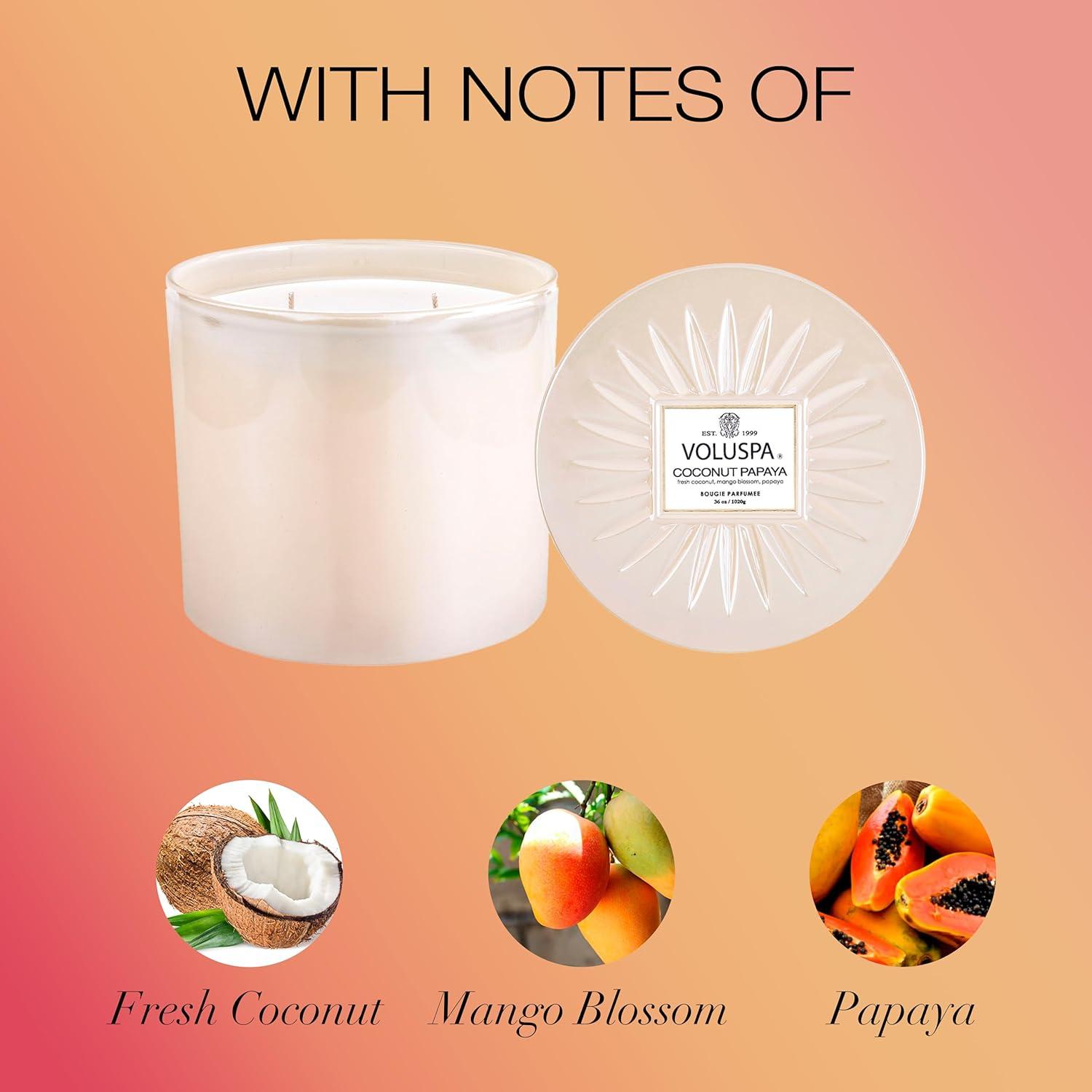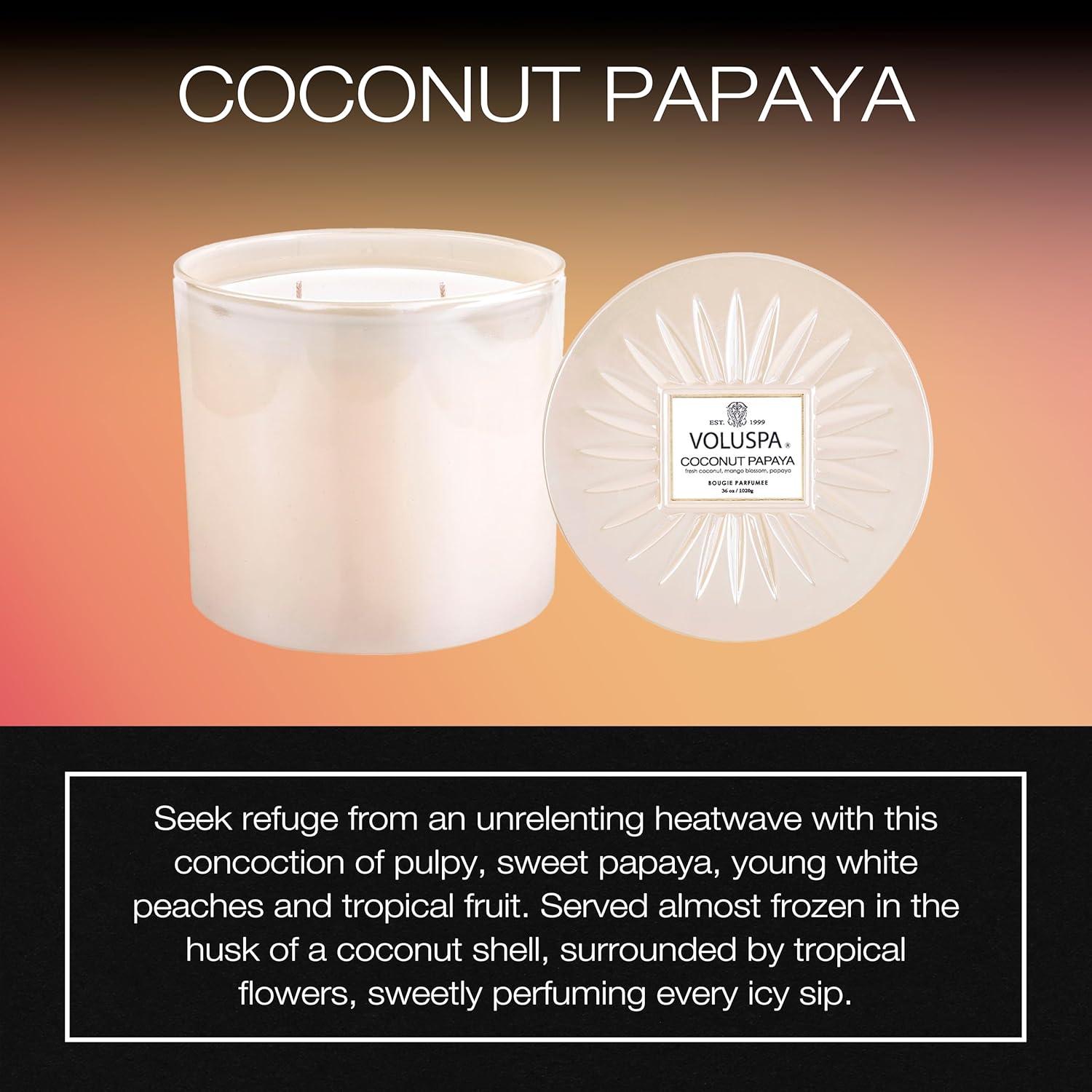 - Discover the latest Voluspa Coconut Papaya, Grande Maison 3 Wick Glass Candle, 36 oz, 100 Hour Burn Time, Coconut Wax for Clean Burning, Handcrafted in The USA from and take advantage of our limited-time introductory offer.