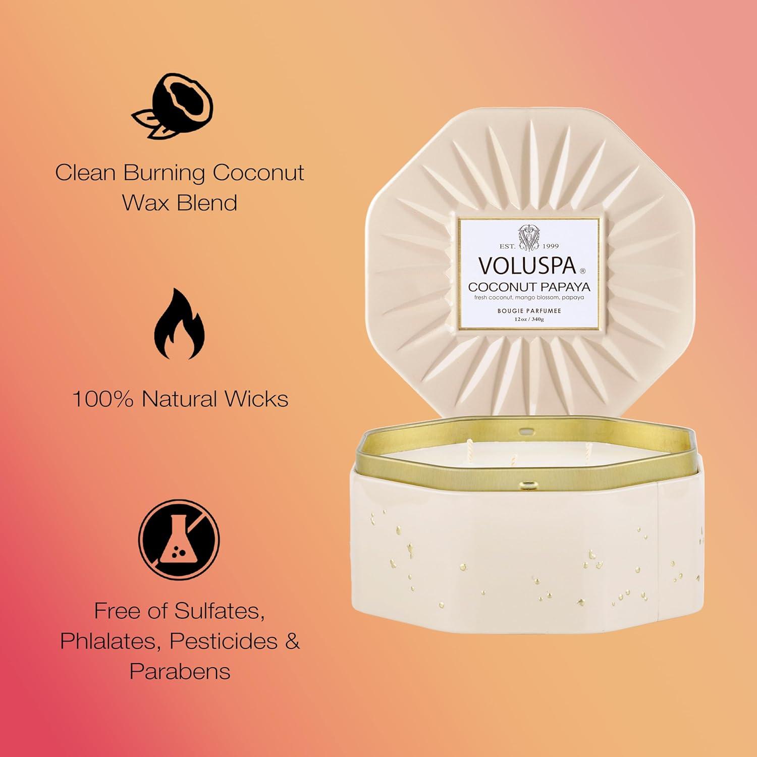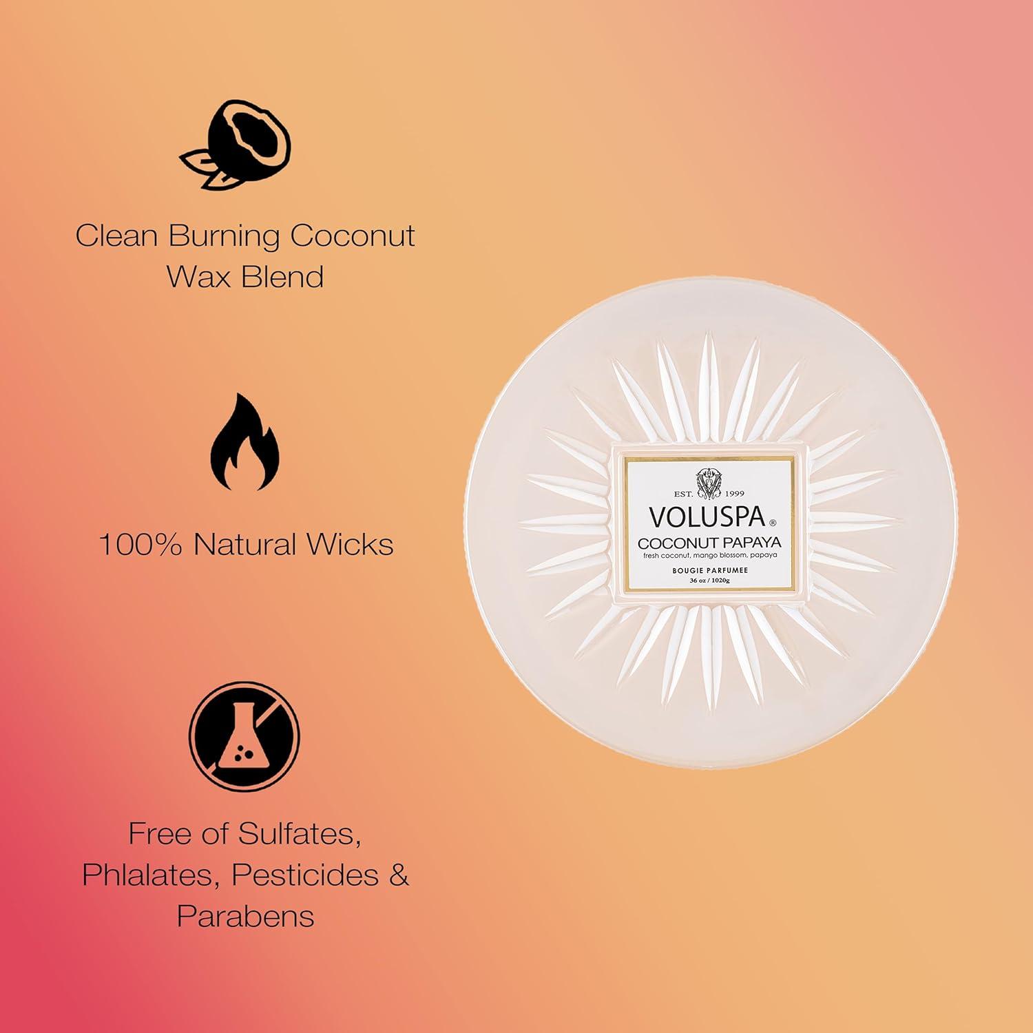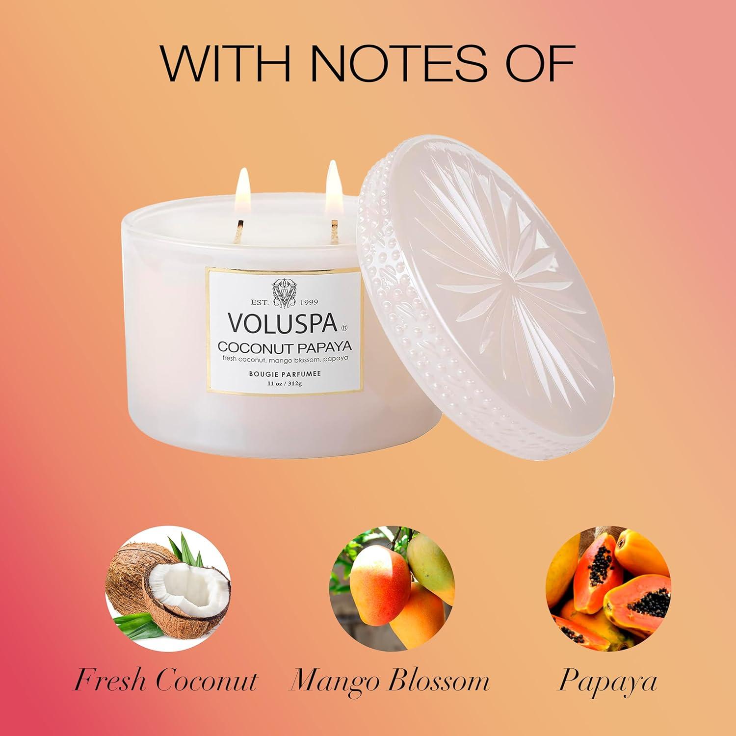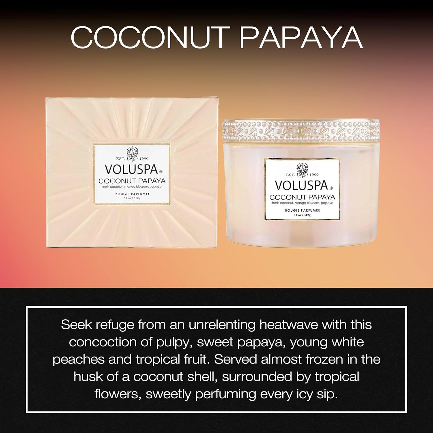 - Discover the latest Voluspa Coconut Papaya, Grande Maison 3 Wick Glass Candle, 36 oz, 100 Hour Burn Time, Coconut Wax for Clean Burning, Handcrafted in The USA from and take advantage of our limited-time introductory offer.