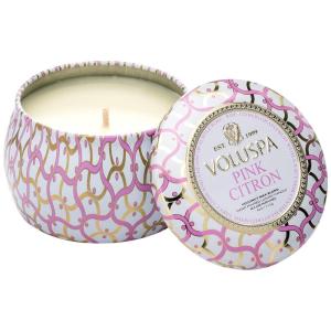 Voluspa Bourbon Vanille, Mini Tin Candle, 4 oz, 25 Hour Burn Time, Coconut Wax for Clean Burning, Handcrafted in the USA(Pink Citron)