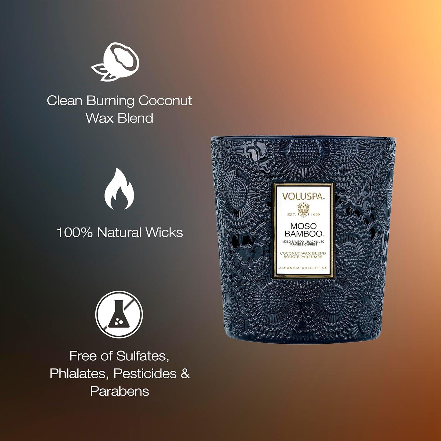 - Save up to 40% on Voluspa Goji Tarocco Orange, Classic Boxed Candle, 9 oz, 60 Hour Burn Time, Coconut Wax for Clean Burning, Handcrafted in The USA(Moso Bamboo) styles during our end-of-season sale.
