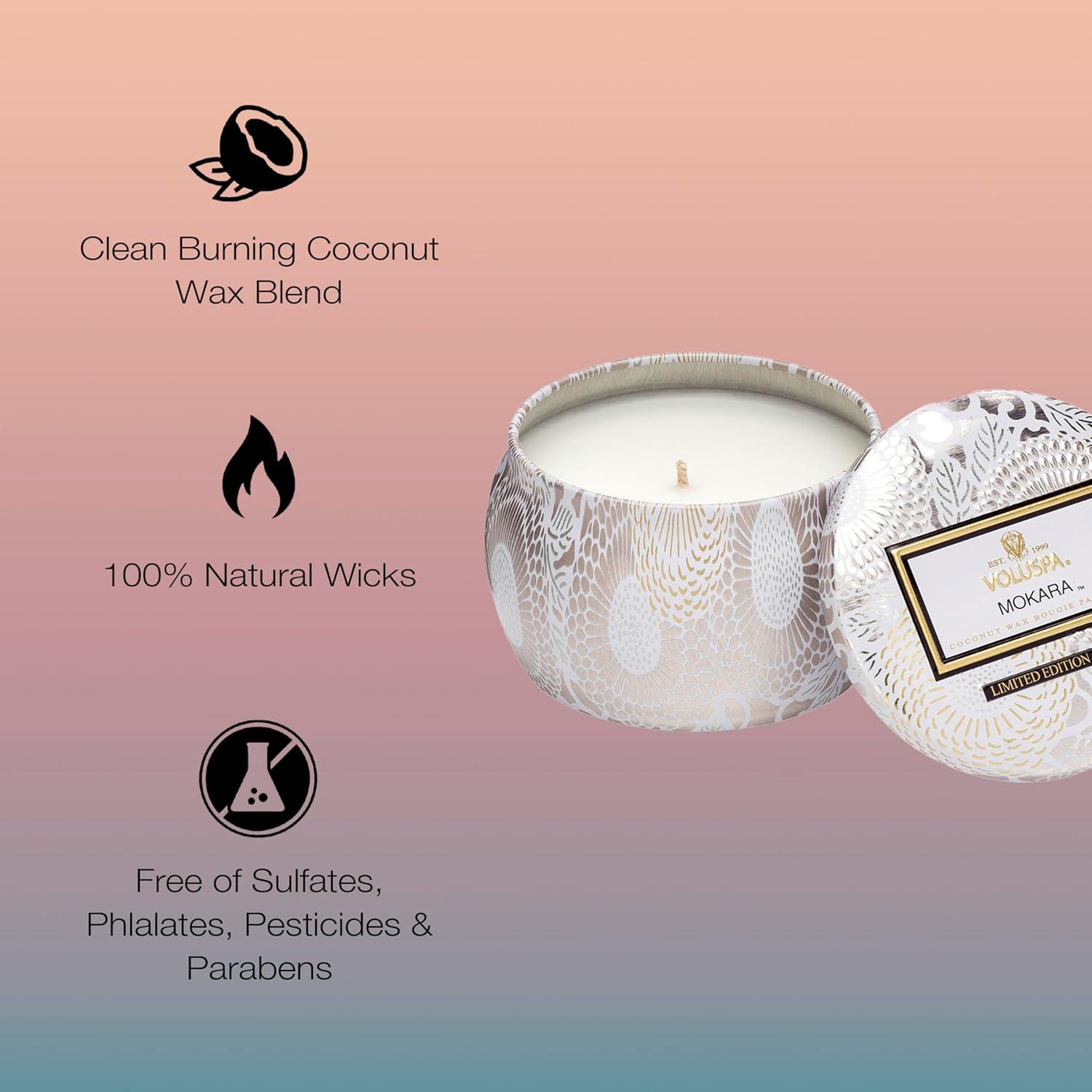 • Voluspa French Cade Lavender, Mini Tin Candle, 4 oz, 25 Hour Burn Time, Coconut Wax for Clean Burning, Handcrafted in The USA(Mokara)