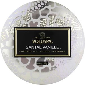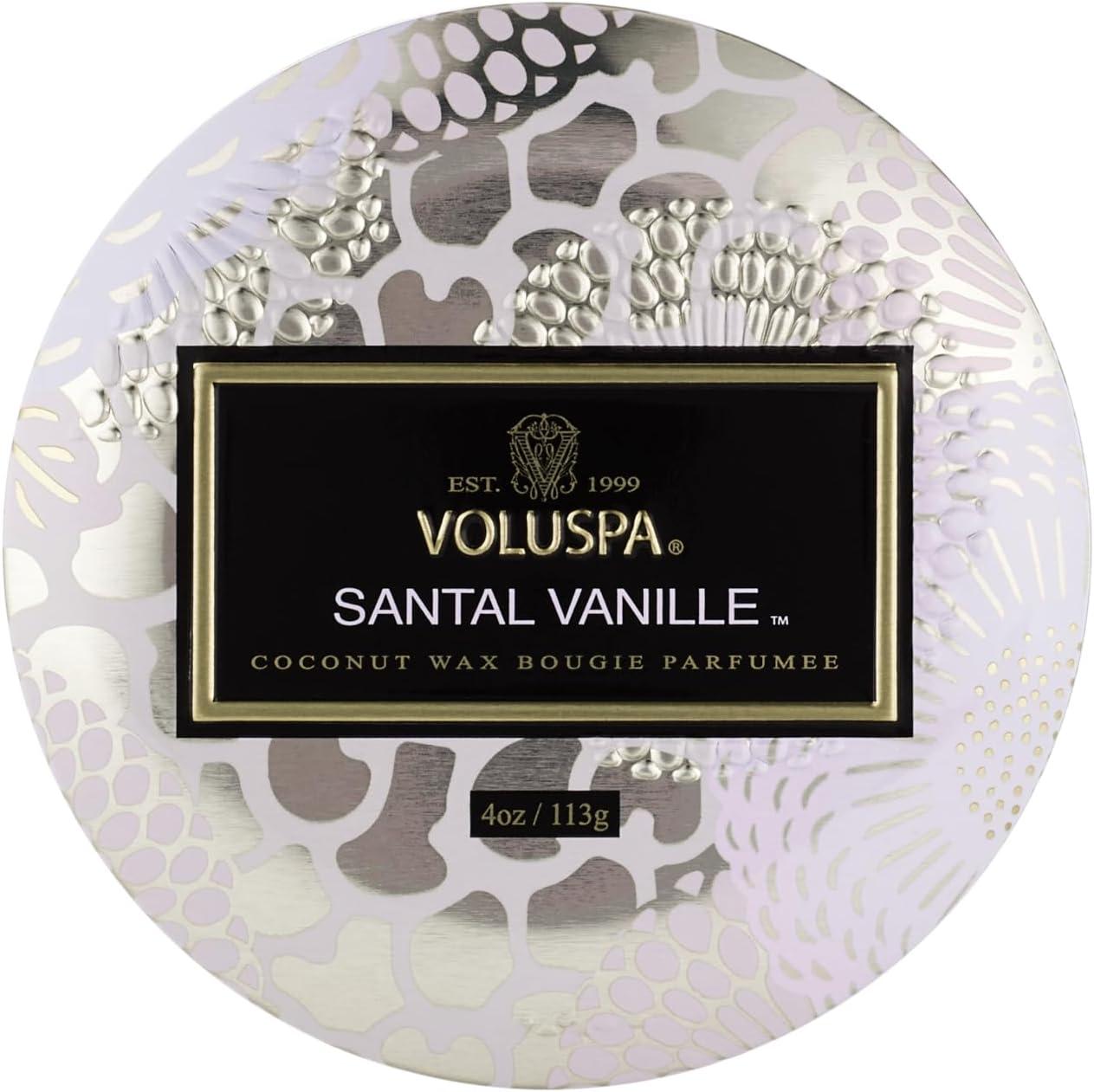 Voluspa French Cade Lavender, Mini Tin Candle, 4 oz, 25 Hour Burn Time, Coconut Wax for Clean Burning, Handcrafted in The USA(Santal Vanille)