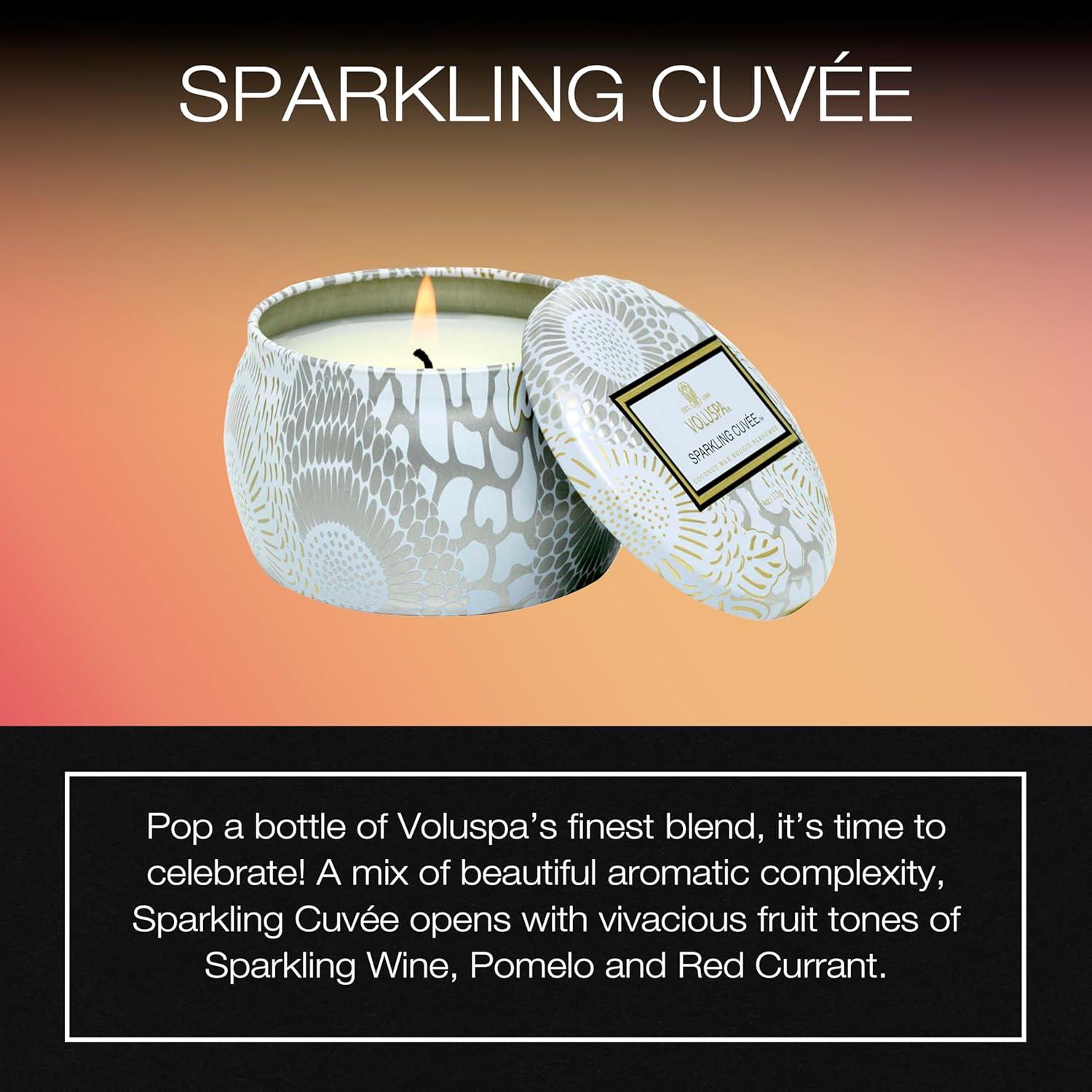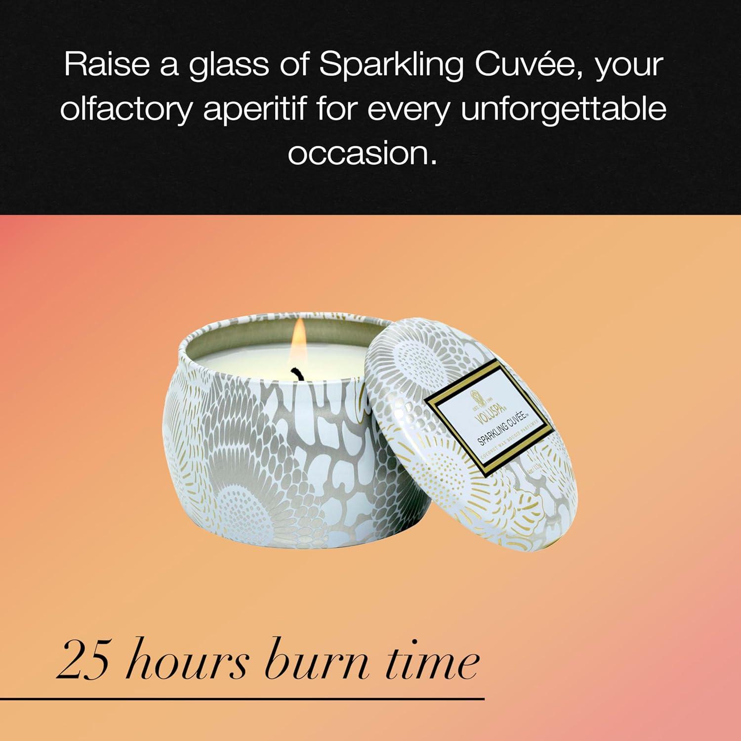 • Voluspa French Cade Lavender, Mini Tin Candle, 4 oz, 25 Hour Burn Time, Coconut Wax for Clean Burning, Handcrafted in The USA(Sparkling Cuvee)
