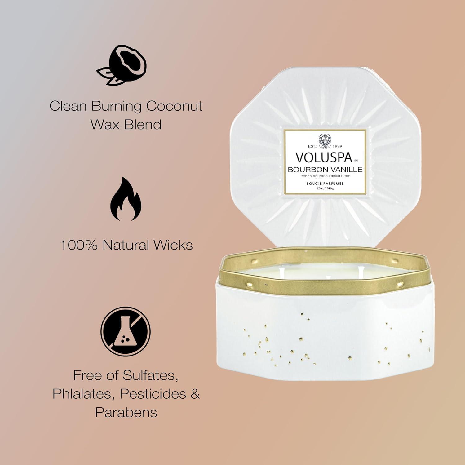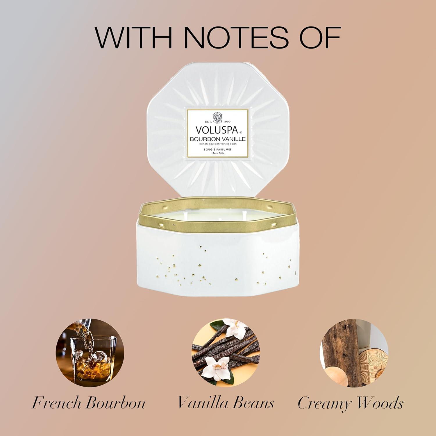 Voluspa Bourbon Vanille, 3 Wick Tin Candle, 12 Ounces, 40 Hour Burn Time, Coconut Wax for Clean Burning, Handcrafted in The USA