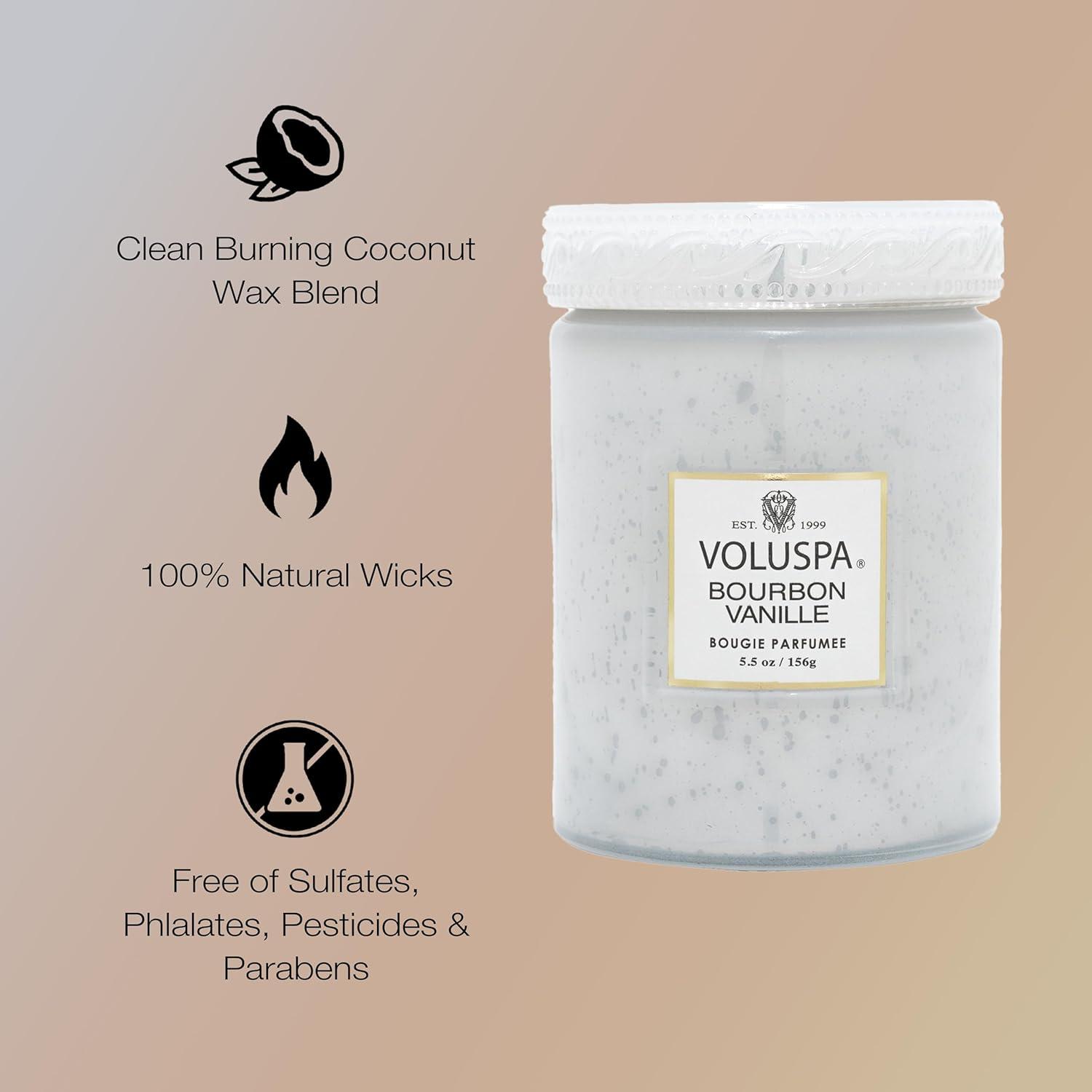Voluspa Bourbon Vanille, Small Candle Jar, 5.5 Ounces, 50 Hour Burn Time, Coconut Wax for Clean Burning, Handcrafted in The USA