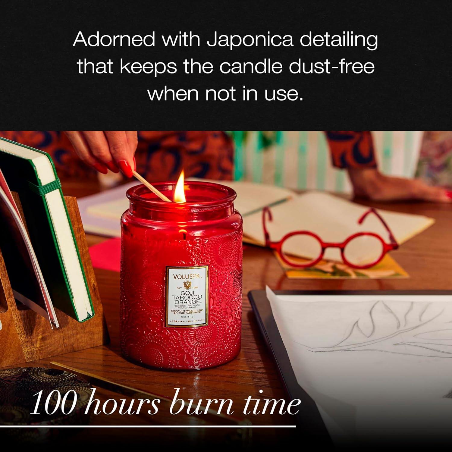 Luxurious Blend: Our decorative floral print coconut wax candle jar contains a sensual soiree of Amber Resin, Sandalwood, Cedar and Vanilla Orchid; this Japonica collection amber glass candle jar effortlessly creates a serene, illuminated ambiance